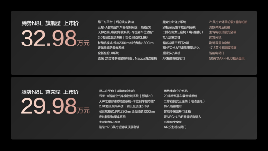 11L超大智能冷暖三开门冰箱、17。3英寸文娱吸顶屏取20扬声器帝瓦雷声响+杜比全景声+QQ音乐Hi-Res无损质量音源组合,连系采用十层材料布局双发泡填充的“云栖座椅”,以“冰箱彩电大沙发”打制家的舒服便当;此外,腾势N8L还获得了中汽核心“零甲醛”认证,搭配四温区双层流空调系统、定眩智能防晕车系统,配合打制沉浸式“挪动客堂”。同时焕新更精美的UI界面,并首发推出腾势IP专属动态从题,情感价值满满,让人机交互兼具聪慧取感情温度。
