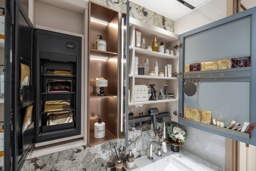 配备美妆灯取抽拉龙头的 “感官SPA” 系统,则将洗漱升级为一场全方位的护理体验,于细节处兑现“悦己”许诺