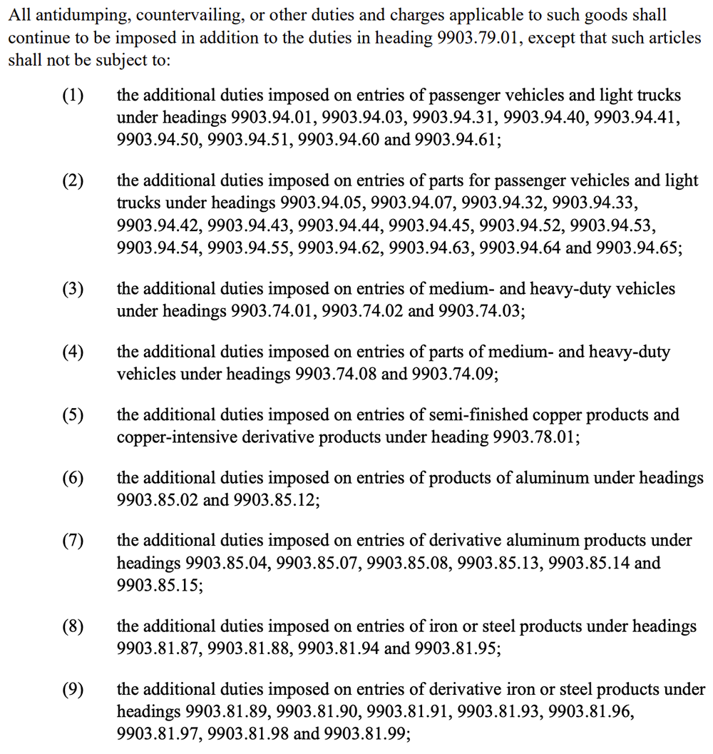 该附件明白指出,按照此行政号令对半导体征收的任何25%关税都不会叠加正在特朗普按照其他232条目号令征收的其他关税之上。此外,铜、铝、钢以及汽车和卡车零部件也将免征关税。